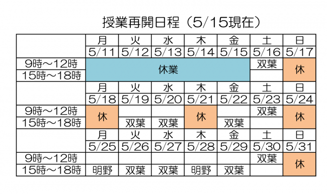 双葉教室はこのまま再開の予定です。