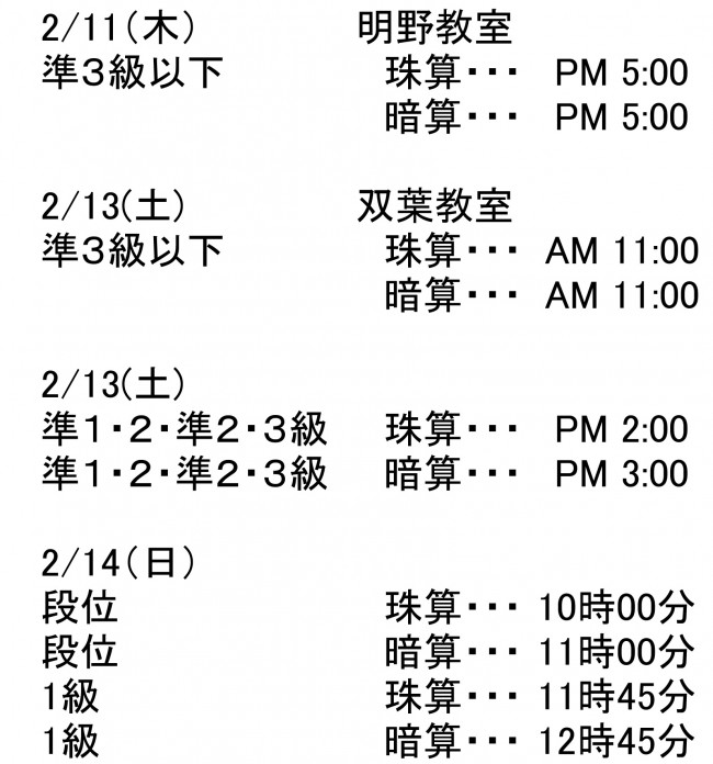 準3級以下は各教室にて、3級以上は苫小牧商工会議所にて試験となります。