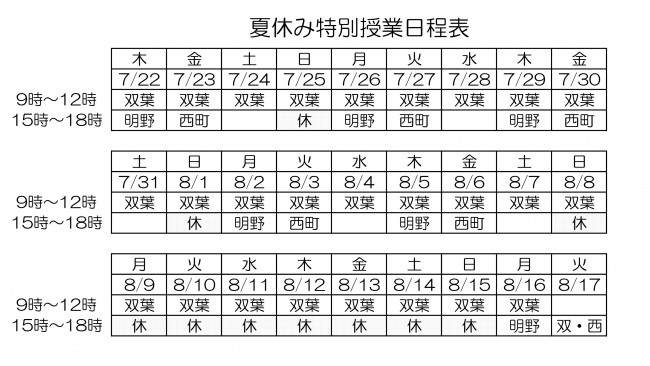 夏休み授業日程